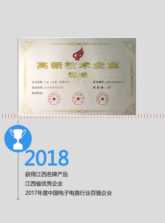 江西紅板科技股份有限公司成立于2005年,注冊地點在江西省吉安市井岡山經濟技術開發區京九大道281號,是一家集印制電路板研發、生產、銷售于一體的國家高新技術企業。公司主營業務:生產銷售印制電路板(又稱線路板、PCB)。公司已形成完善的產品結構,產品包括HDI板、剛性板、柔性板、剛柔結合板、類載板、IC載板等,并具備全面的技術研發和生產能力,可為客戶提供多樣化的產品選擇和一站式服務。